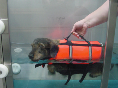 Een hond zonder loopfunctie of die niet mag belasten kan bij het zwemmen goed getraind worden. Denk daarbij vooral aan honden met een ernstig rugprobleem en honden die geen stafunctie hebben. Het zwemmen is als trainingsprikkel echter niet exact te doseren, de snelheid van de zwembeweging wordt door de hond bepaald en is niet meetbaar en daardoor niet herhaalbaar. De enige variabele waarop gestuurd kan worden is de tijdsduur. Daarnaast is de temperatuur van het water in buitenwater vaak te koud. Het zwemmen is ook geen functionele training voor het lopen van de hond, bij het zwemmen wordt een andere beweging gemaakt dan bij het lopen. Zo is er bij het zwemmen geen strekking van knie en elleboog.
